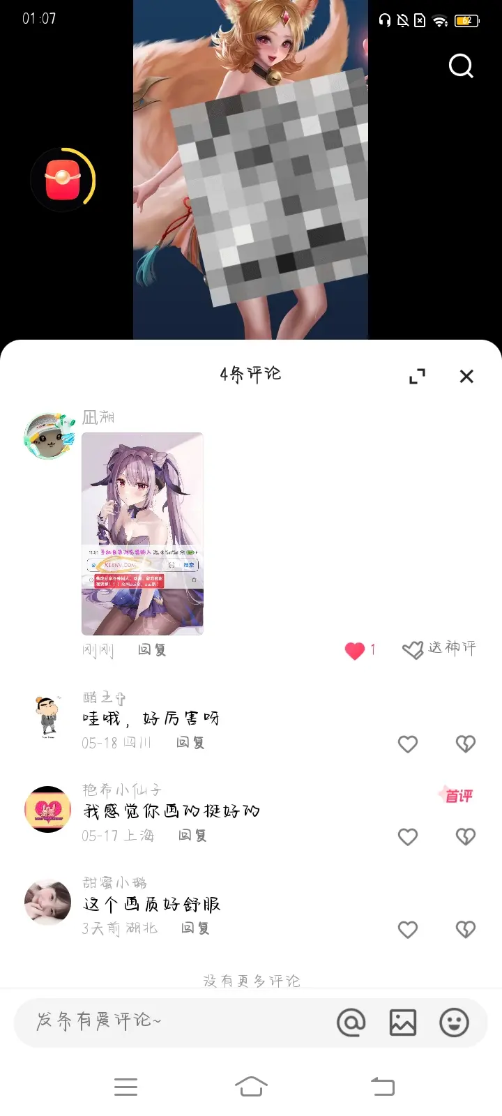 打开作品评论区评论 1张 上面刚保存的图片